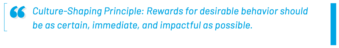 Culture-Shaping Principle: Rewards for desirable behavior should be as certain, immediate, and impactful as possible.